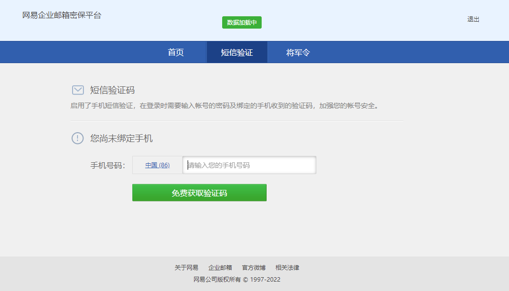 4、短信验证开启成功后,可使用绑定的手机号进行手机短信验证;