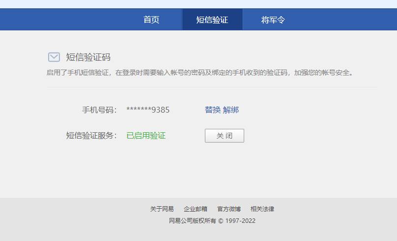 3、邮件系统强制开启二次验证,可选择“短信验证服务”,绑定常用手机号码,便于后期登录邮箱时进行短信验证;