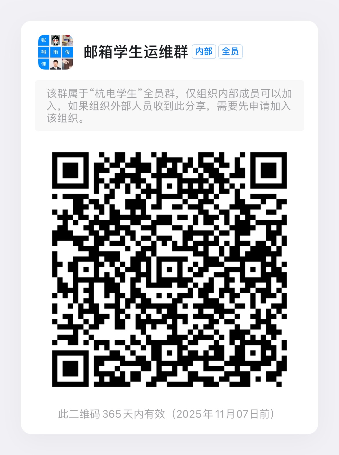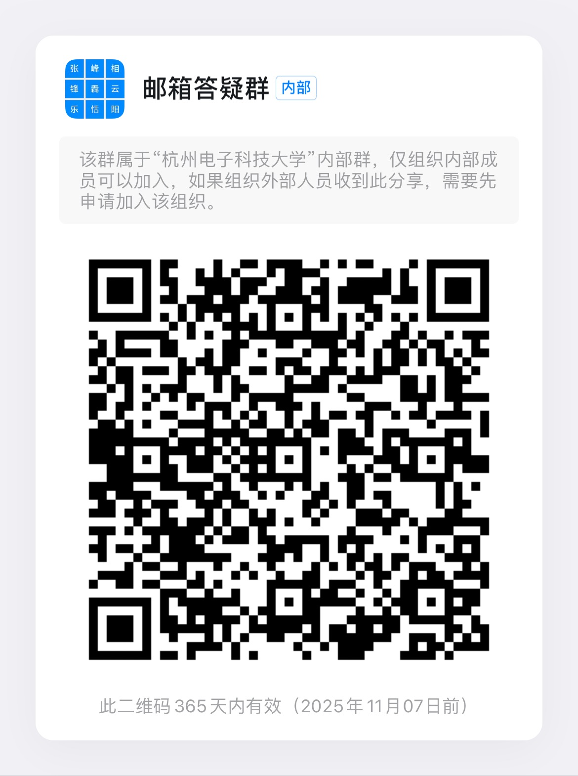 三、如有问题,教职工请加入钉钉“杭电邮箱答疑群”,学生请加入钉钉“杭电邮箱学生运维群”