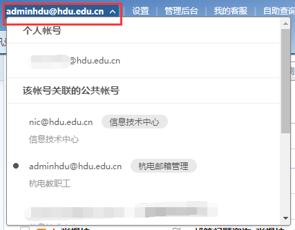 2、邮件系统后台默认创建“学工号@hdu.edu.cn”的邮箱;